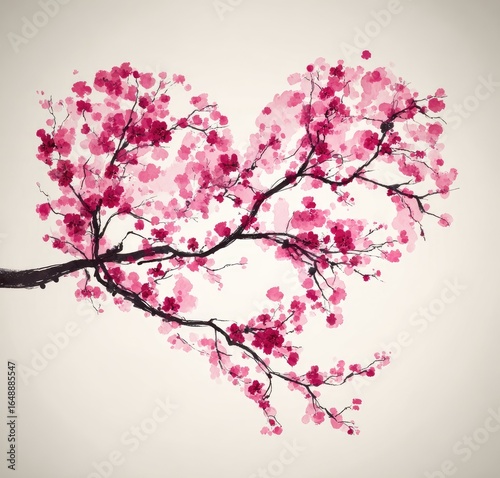 © Kunci, Fototapeta premium Heart-shaped cherry blossom branch