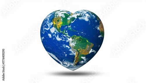 Fototapeta premium Heart-shaped Earth with visible continents and cloud formations for editorial...