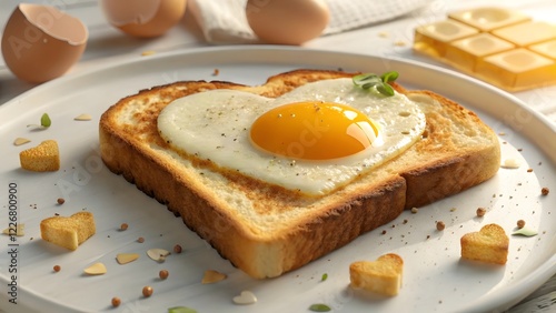 Fototapeta premium Heart-Shaped Fried Egg on Toast Photorealistic Breakfast Art V1