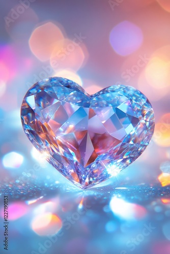 © Яна Ерік Татевосян, Fototapeta premium Heart-shaped gemstone on shiny background. Selective focus.
