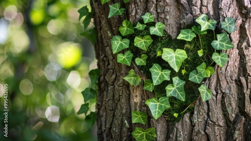 Obraz premium Heart shaped ivy climbing tree trunks