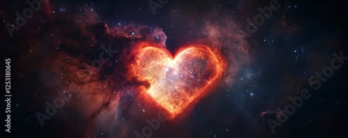Obraz premium Heart-shaped nebula in deep space with glowing red and blue cosmic clouds...