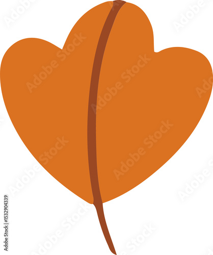 © vectorfusionart, Obraz premium Heart-shaped orange leaf is floating in flat design, featuring brown vein on transparent background