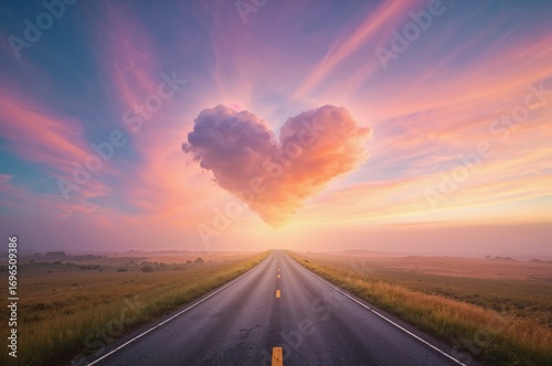 Naklejka premium Heart-shaped sky with stunning colors. Concept of love's journey.
