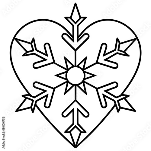 © MdMajidul, Fototapeta premium Heart-shaped snowflake line art vector