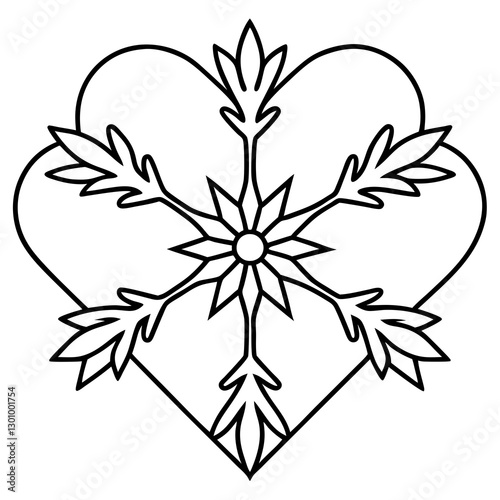 © MdMajidul, Fototapeta premium Heart-shaped snowflake line art vector