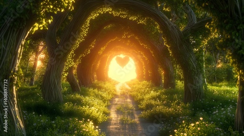 Obraz premium Heart-Shaped Sunlight Path in a Forest