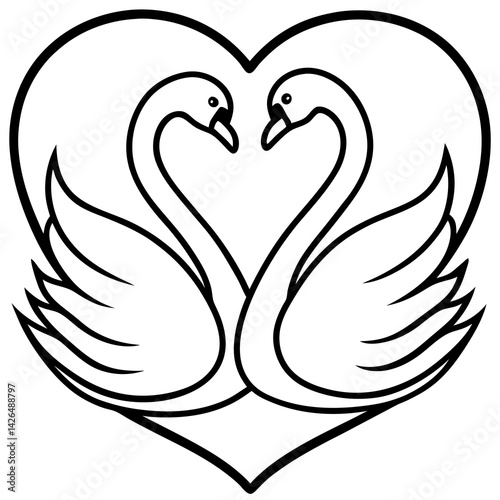 © Mahabub, Obraz premium Heart-Shaped Swans on Water - Minimalist Line Art