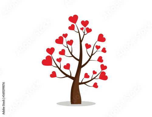 © miztanya, Obraz premium Heart shaped tree with petals. Vector icon