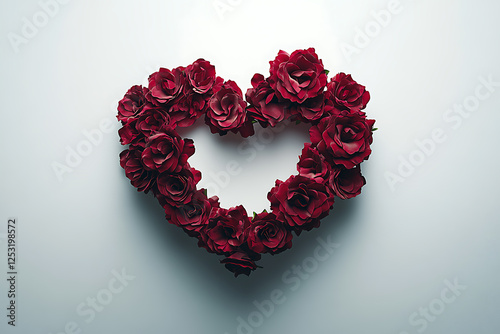 Obraz premium Heart-Shaped Wreath of Deep Red Roses on a Light Grey Background