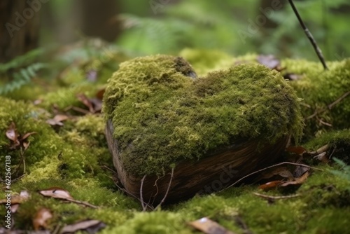 Obraz premium Heart stone moss. Generate Ai