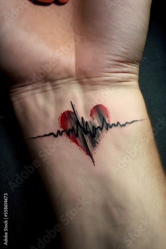 © Worldillustrator, Obraz premium Heart tattoo. Symbol of love. Tattoo idea for men and women. Generative AI.