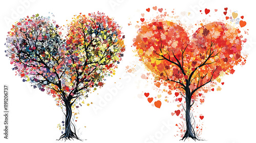 © Karith, Fototapeta premium Heart Trees of Autumn