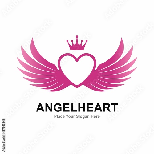 © Nickpd, Obraz premium Heart wings with crown vector logo design. Suitable for business, web, decoration, romantic and art