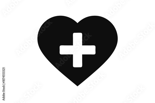 © Bably, Fototapeta premium Heart With Plus Icon on White Background Sign Symbol Silhouette Design