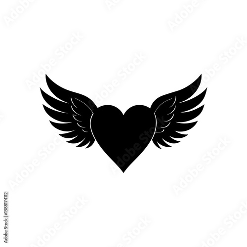 © Profullya, Obraz premium Heart with Wings Vector Silhouette
