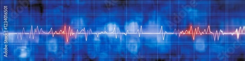 © Ilja, Naklejka premium Heartbeat Line On A Blue Grid Background, A Vibrant And Clean Digital Illustration Of Vital Signs
