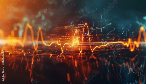 © Pornfa, Fototapeta premium Heartbeat line transforming into a digital AI code