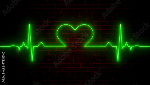 Naklejka premium Heartbeat Pulse: A Neon EKG Wave Analysis - An Abstract Exploration of Cardiology, Life, and Health Care with Illustrations of Vitality, Diagnosis, and the Power of Love in Medicine