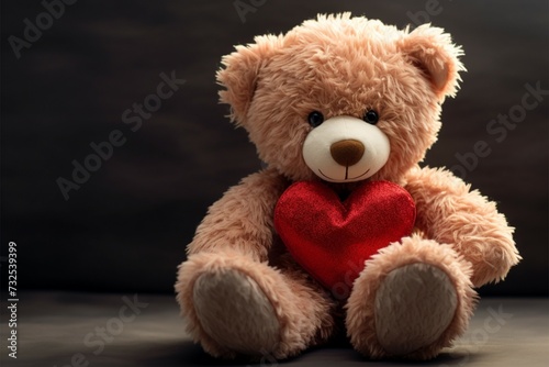Obraz premium Heartfelt cuddle Teddy bear holds red heart, perfect Valentines symbol
