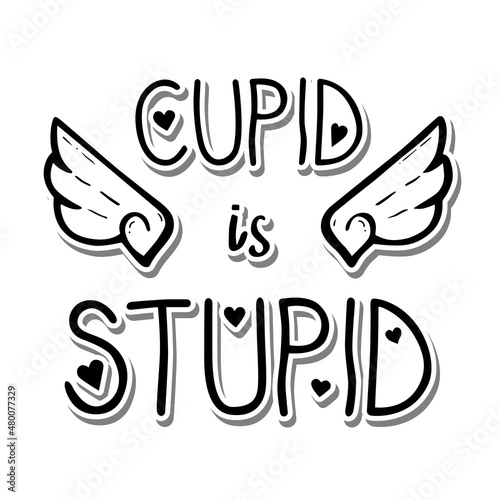 Obraz premium Hearts and wings with Lettering 'CUPID is STUPID'. Vector illustration about...