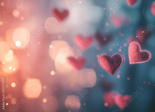 © Jeerawat, Obraz premium Hearts bokeh background