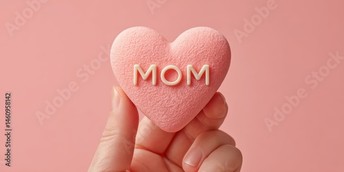 © Aura Visuals, Fototapeta premium Heartshaped Mom object held in hand on pink background