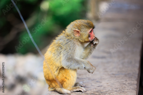 © 大爷 倪, Naklejka premium Heartwarming Moment of a Mother Monkey Embracing Her Baby