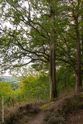 Naklejka premium heather lined footpath in Northumberland wood