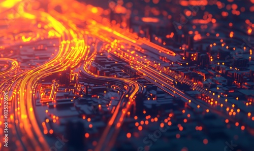 Obraz premium Heatmap of a city's transportation system, with warm colors highlighting the...