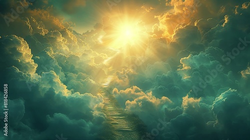 Obraz premium Heavenly escape through cotton clouds into blinding sunlight