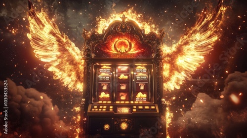 © RoAlin, Obraz premium Heavenly vs Infernal Split Slot Machine Design Incorporating Animated Motifs