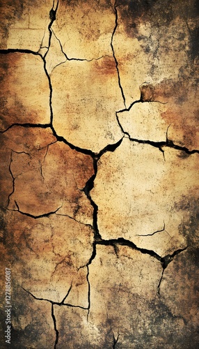 © Berkah, Obraz premium Heavily cracked and aged wall with earth tone colors