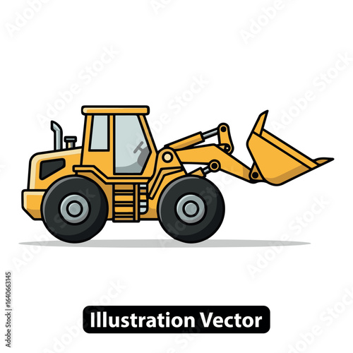 Fototapeta premium Heavy construction wheel loader vehicle. Yellow front-end loader cartoon vector icon