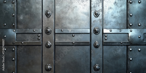 Fototapeta premium Heavy-duty metallic armor plate background with beveled edges, rivets, and...
