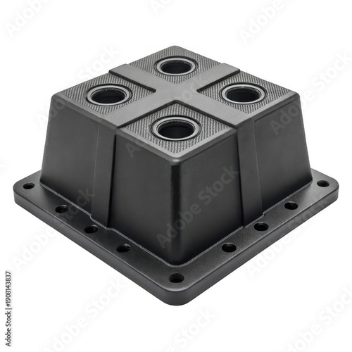 © dasha122007, Obraz premium Heavy-duty rubber stabilizer block with four recess holes, isolated on transparent background.