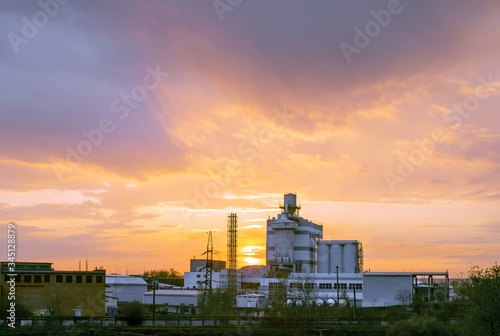 © gorvik, Naklejka premium Heavy industry factory building on sunset background