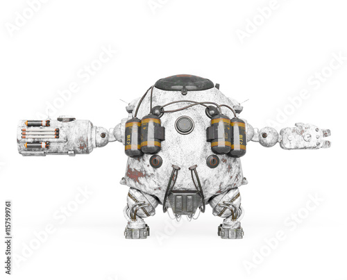 © DM7, Fototapeta premium heavy metal mech ball in a pose on white background rear view