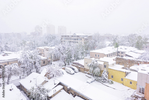 Obraz premium Heavy snow apocalypse in Moldova, frozen Chisinau city, on 20 and 21 of april...