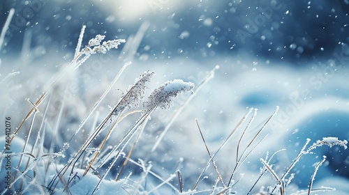 © lin, Obraz premium Heavy snowfall in winter, illustration of winter river scene in snowy landscape
