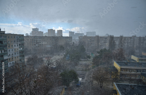 Obraz premium Heavy Snowfall Over Kyiv Residential Area