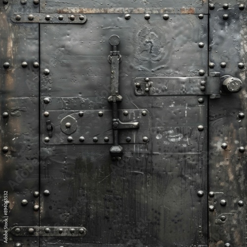 Fototapeta premium Heavyduty metallic safe door representing protection in banking vaults