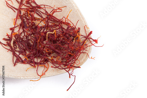 © A.B.G., Naklejka premium Hebras de azafrán en una cuchara de palo