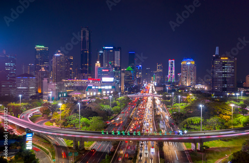 © Creativa Images, Fototapeta premium Hectic traffic along the Sudirman highway at night