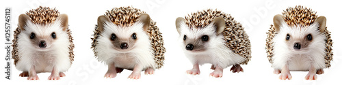 © Prim2513, Obraz premium hedgehog clipart concept. Four cute hedgehogs with distinctive spines, facing forward against a white background. on Transparent background.