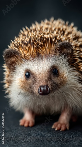 © Georg, Fototapeta premium Hedgehog curiously exploring a dark surface in a warm indoor environment