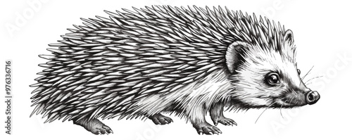 © GRACE, Obraz premium hedgehog Engraving style. Simple pencil drawing vector