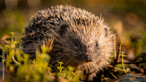 © web, Fototapeta premium Hedgehog hiding between the grass