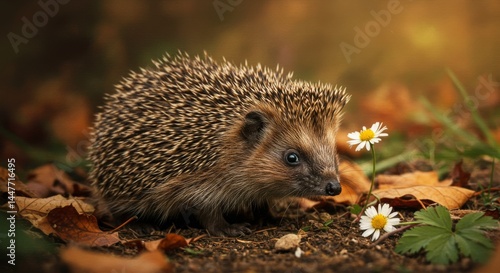 © slidesign, Fototapeta premium Hedgehog in autumn foliage