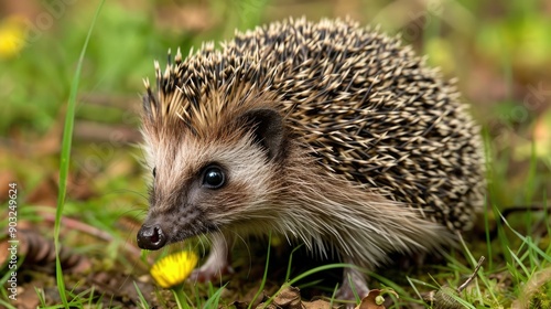 © Rufat, Fototapeta premium Hedgehog in garden wild free roaming hedgehog taken from a wildlife hide to help monitor the health and population of this favourite but declining mammal scientific name erinaceus europaeus